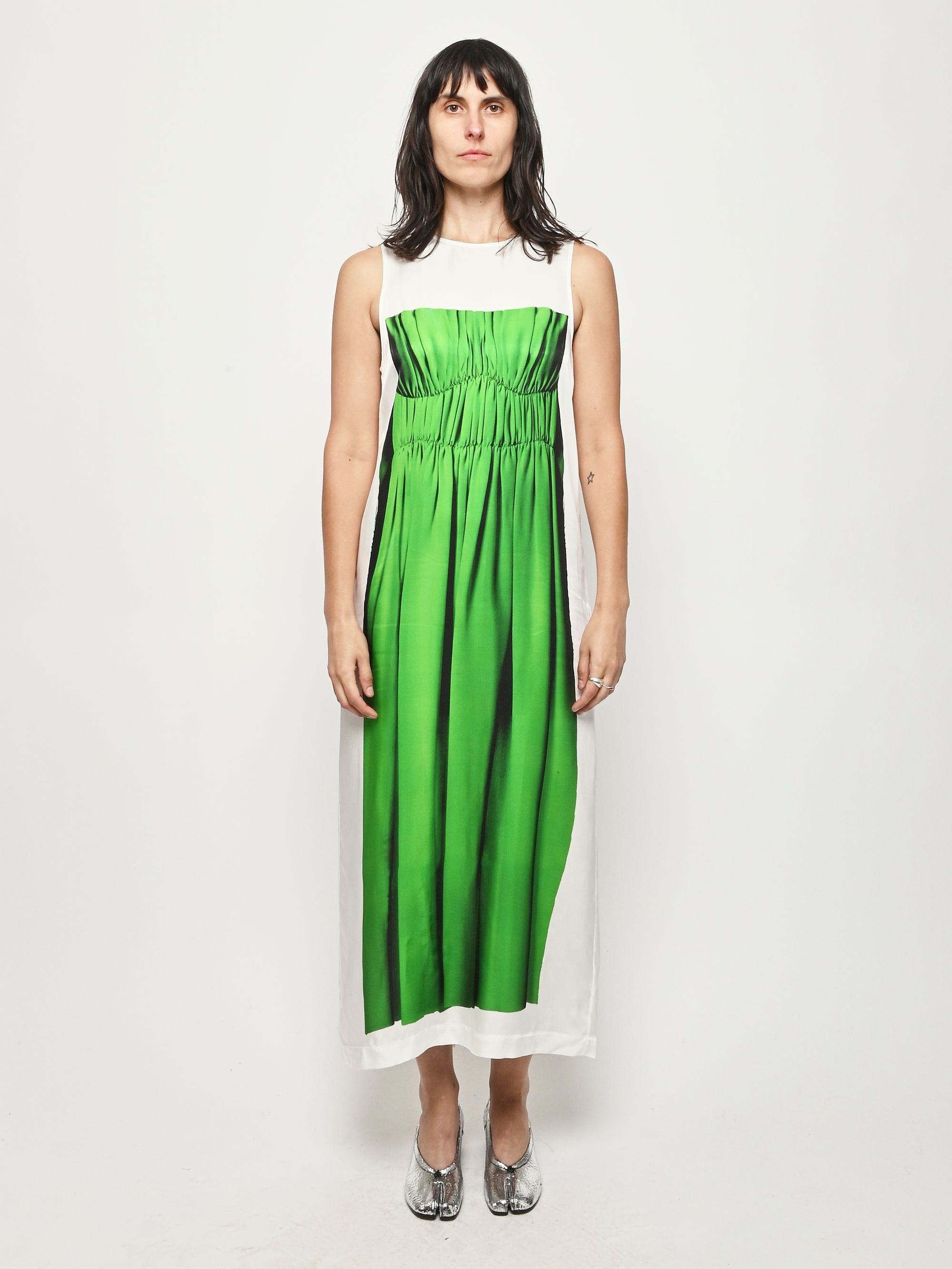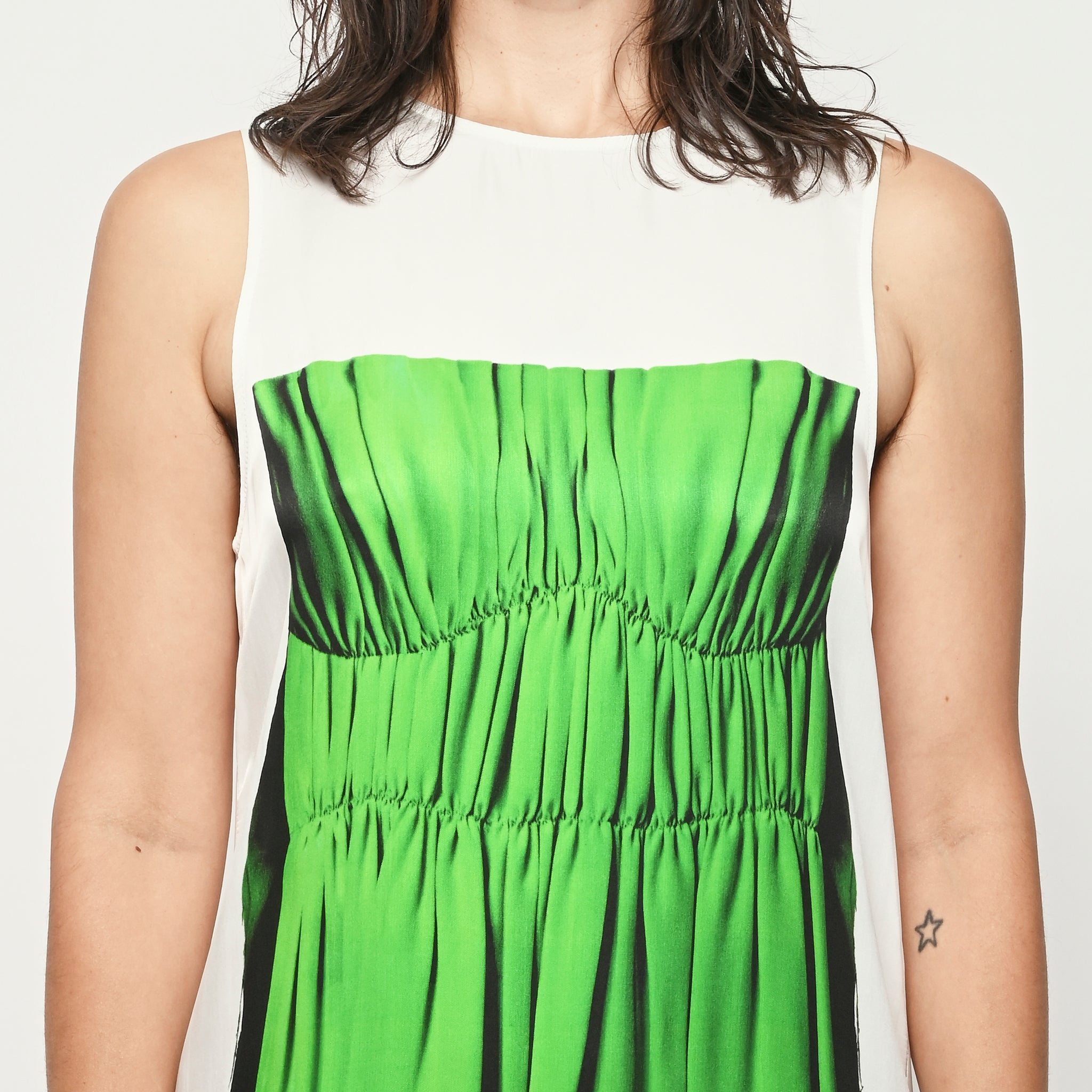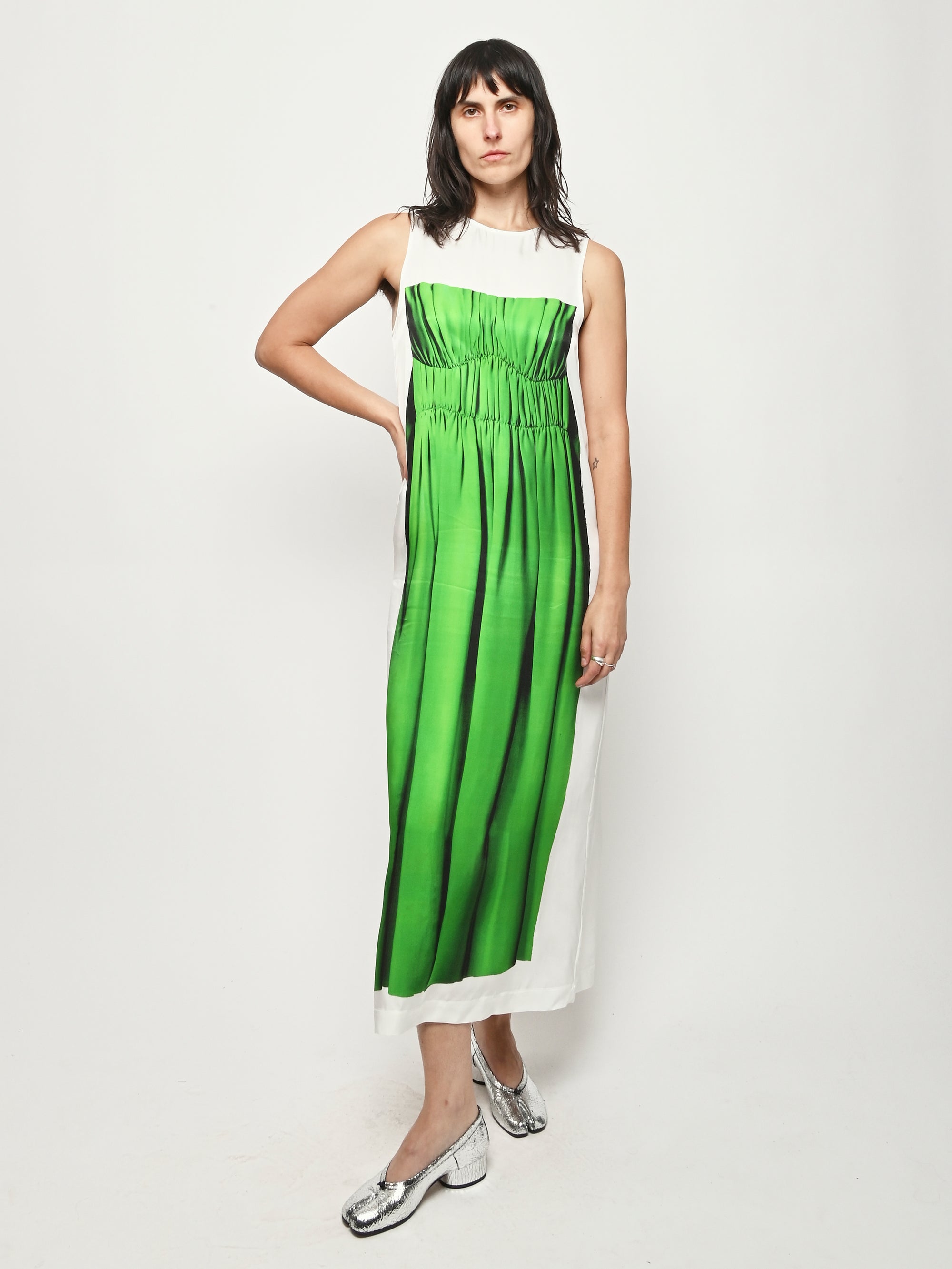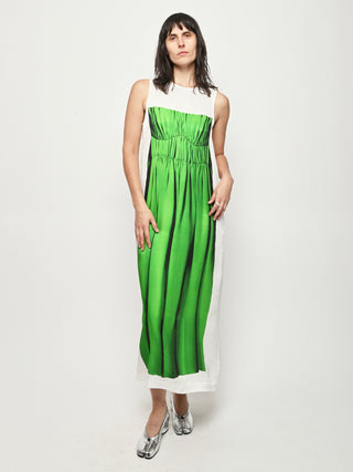 Crafted from a luxe drapey fabric, the Trompe L’Oeil Dress features a custom Tibi print that plays with depth and dimension in all the right ways. Finished with a zipper closure at the back, it’s an easy statement piece that stands on its own.