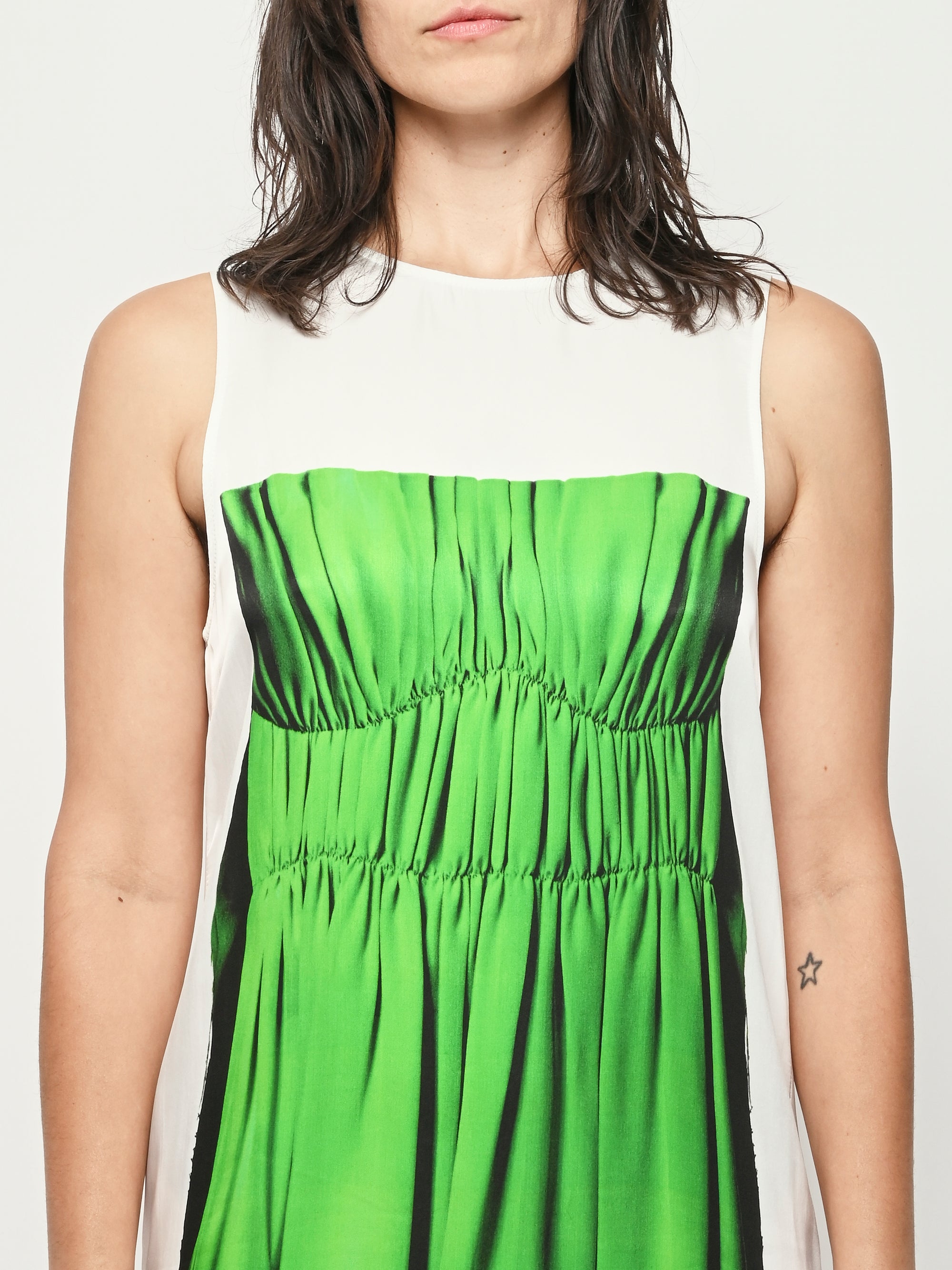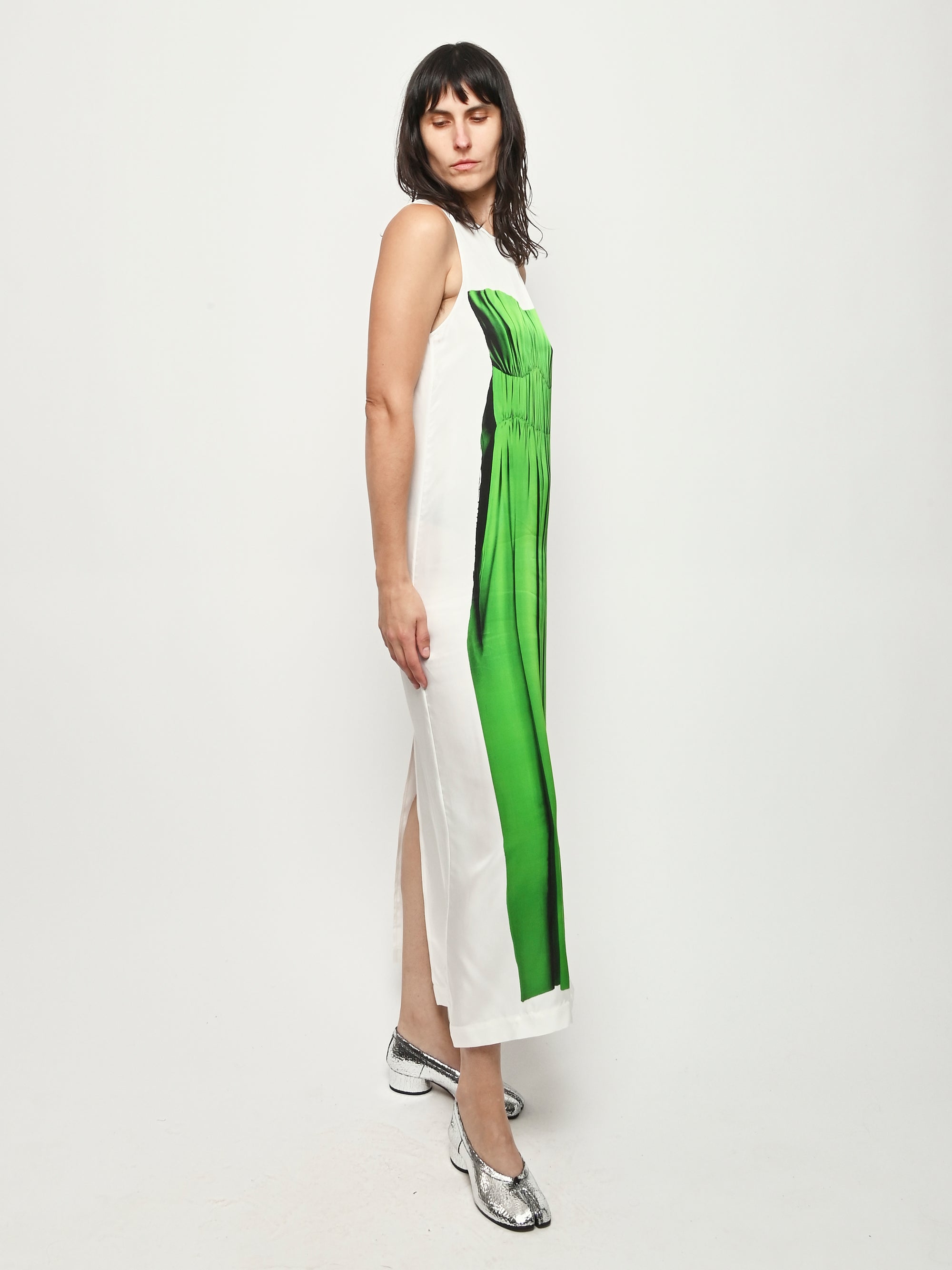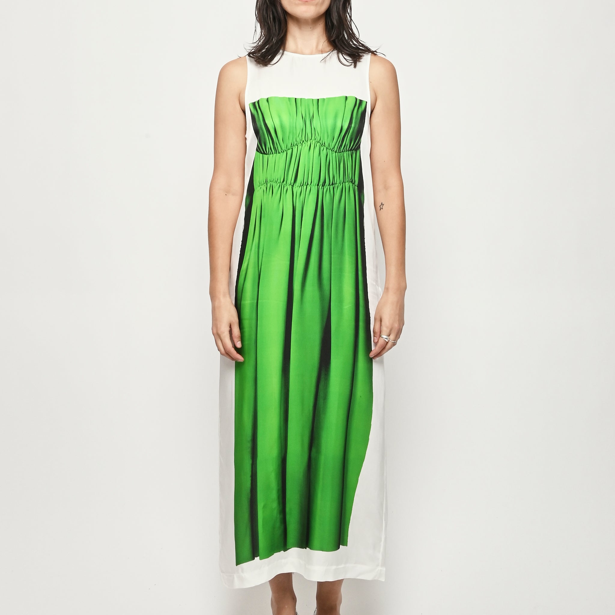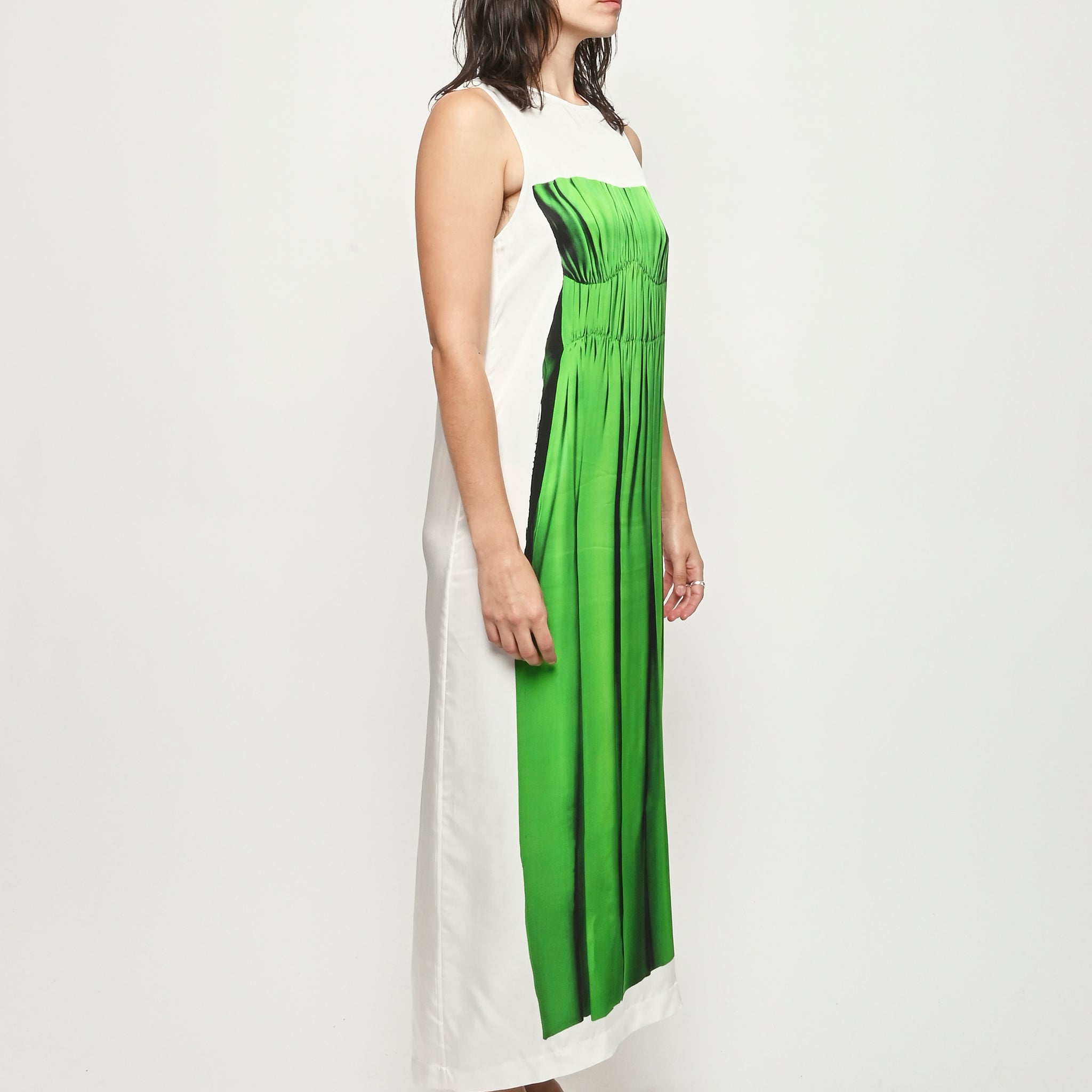 Crafted from a luxe drapey fabric, the Trompe L’Oeil Dress features a custom Tibi print that plays with depth and dimension in all the right ways. Finished with a zipper closure at the back, it’s an easy statement piece that stands on its own.