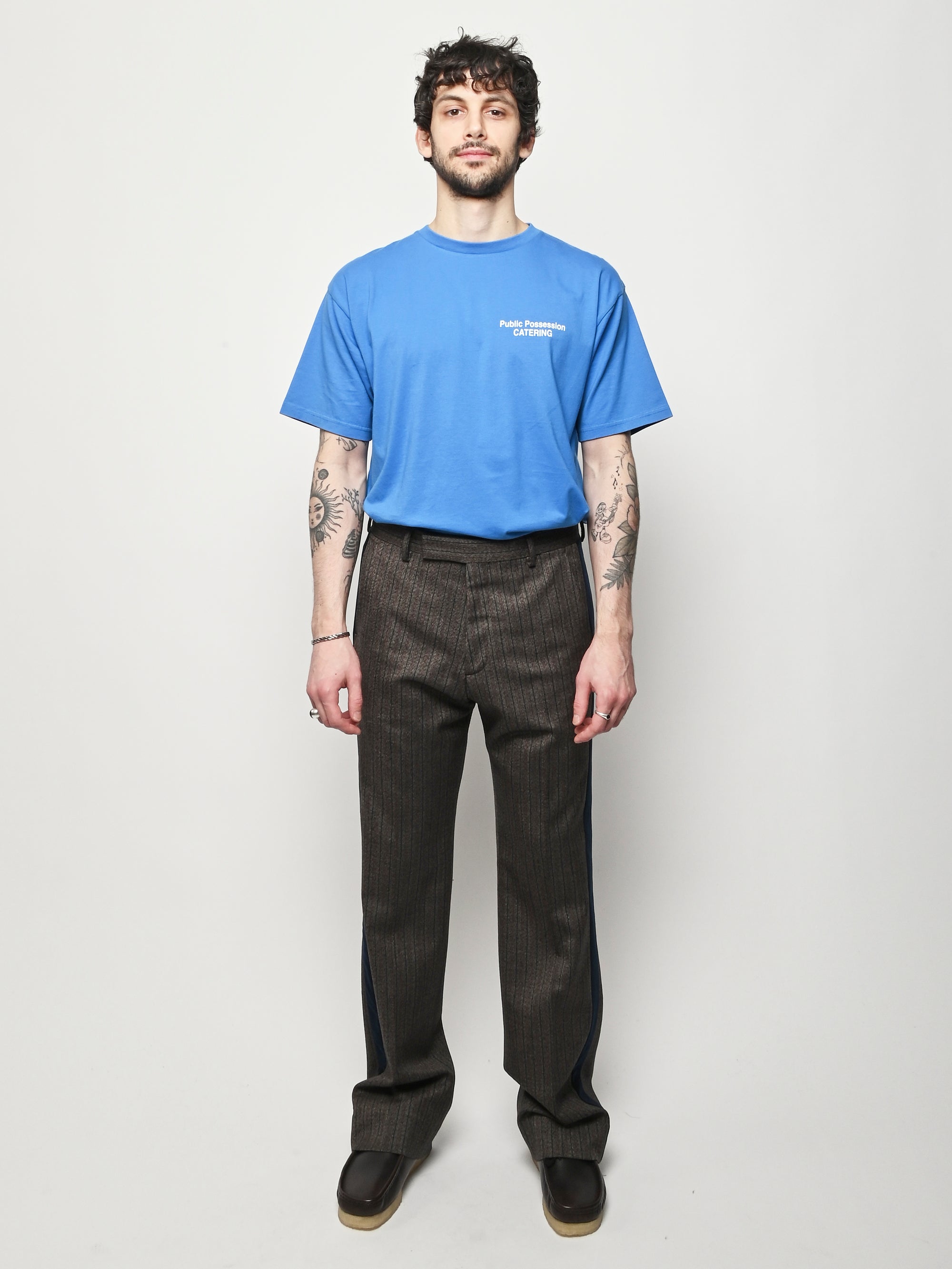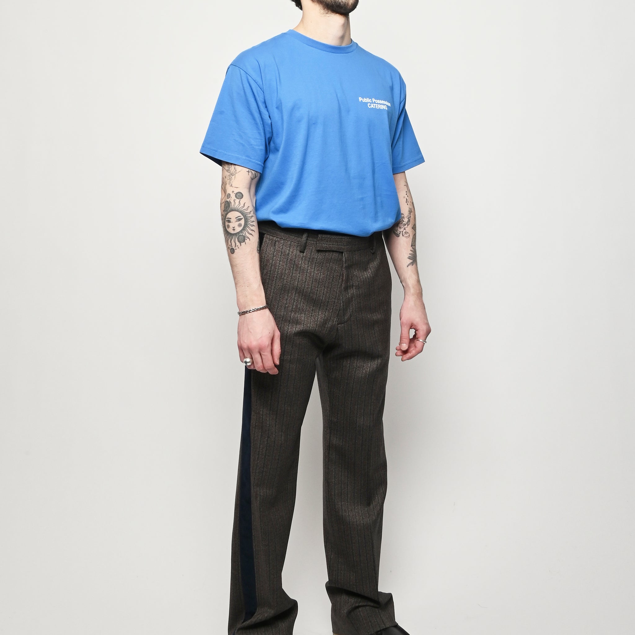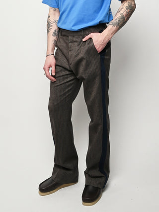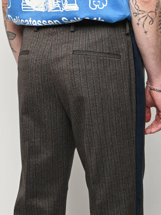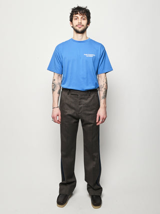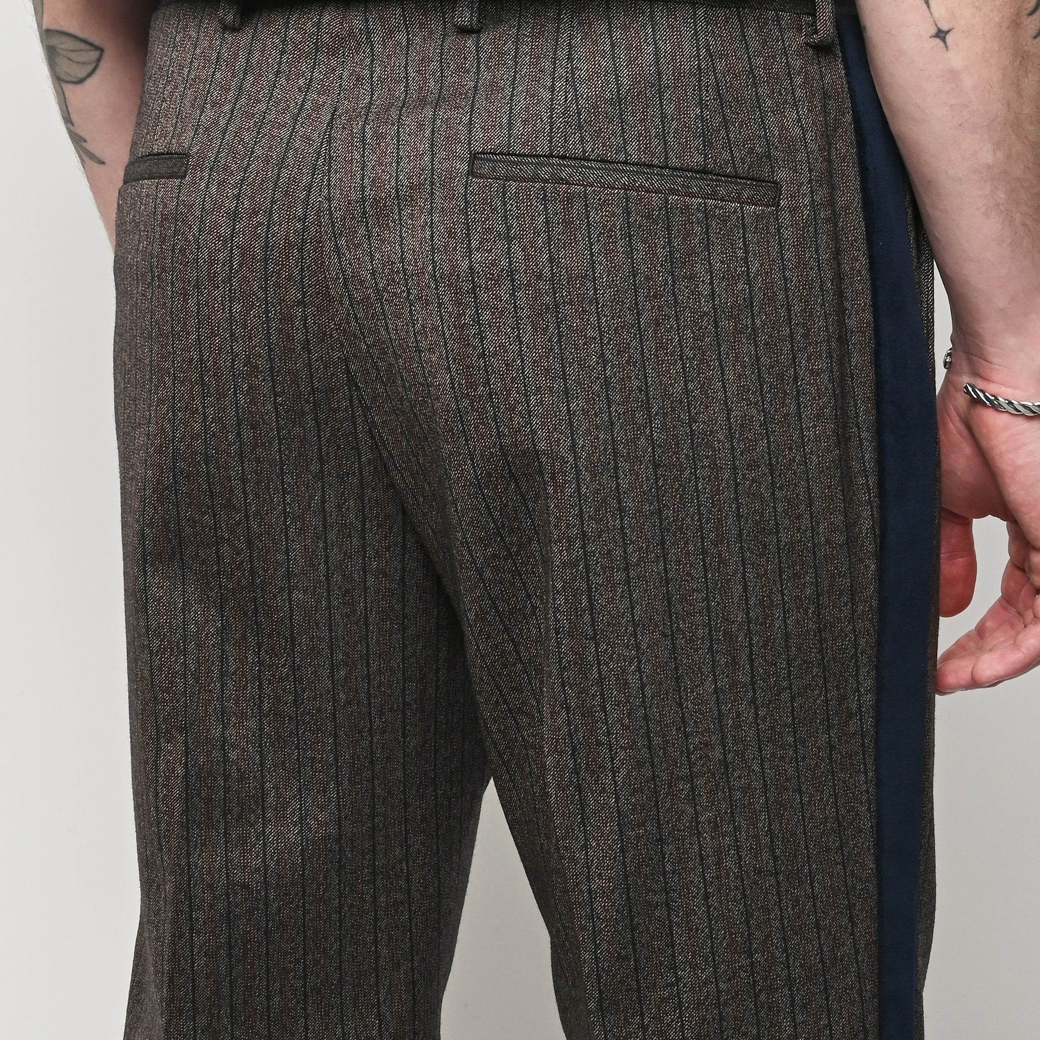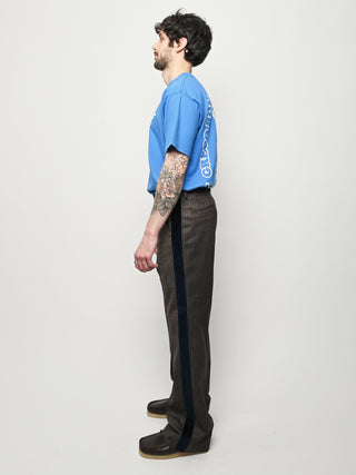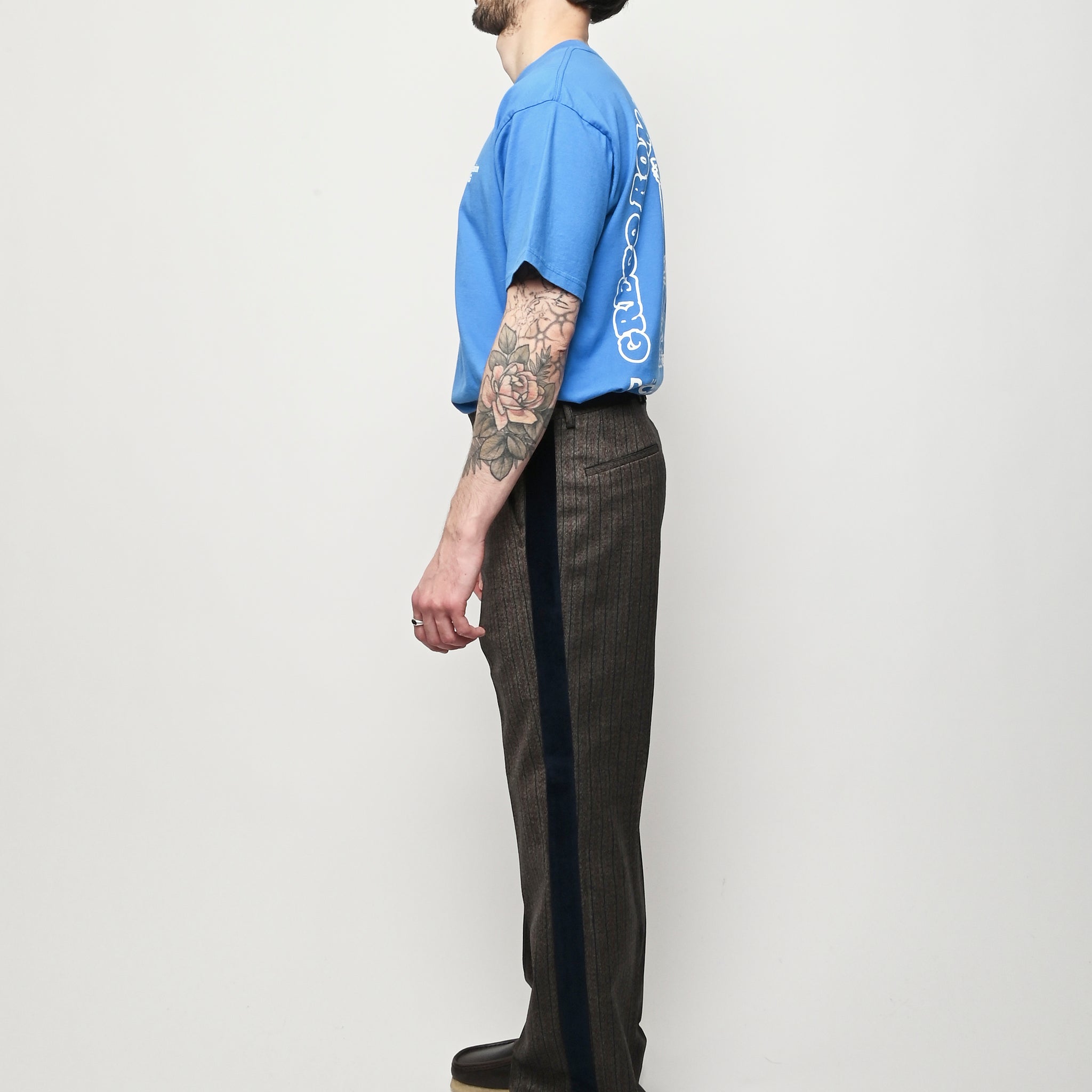 Wales Bonner Alto Tailored Trousers. Rich mouliné tailoring wool with a viscose lining and navy velvet trouser braid.