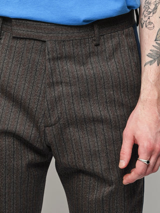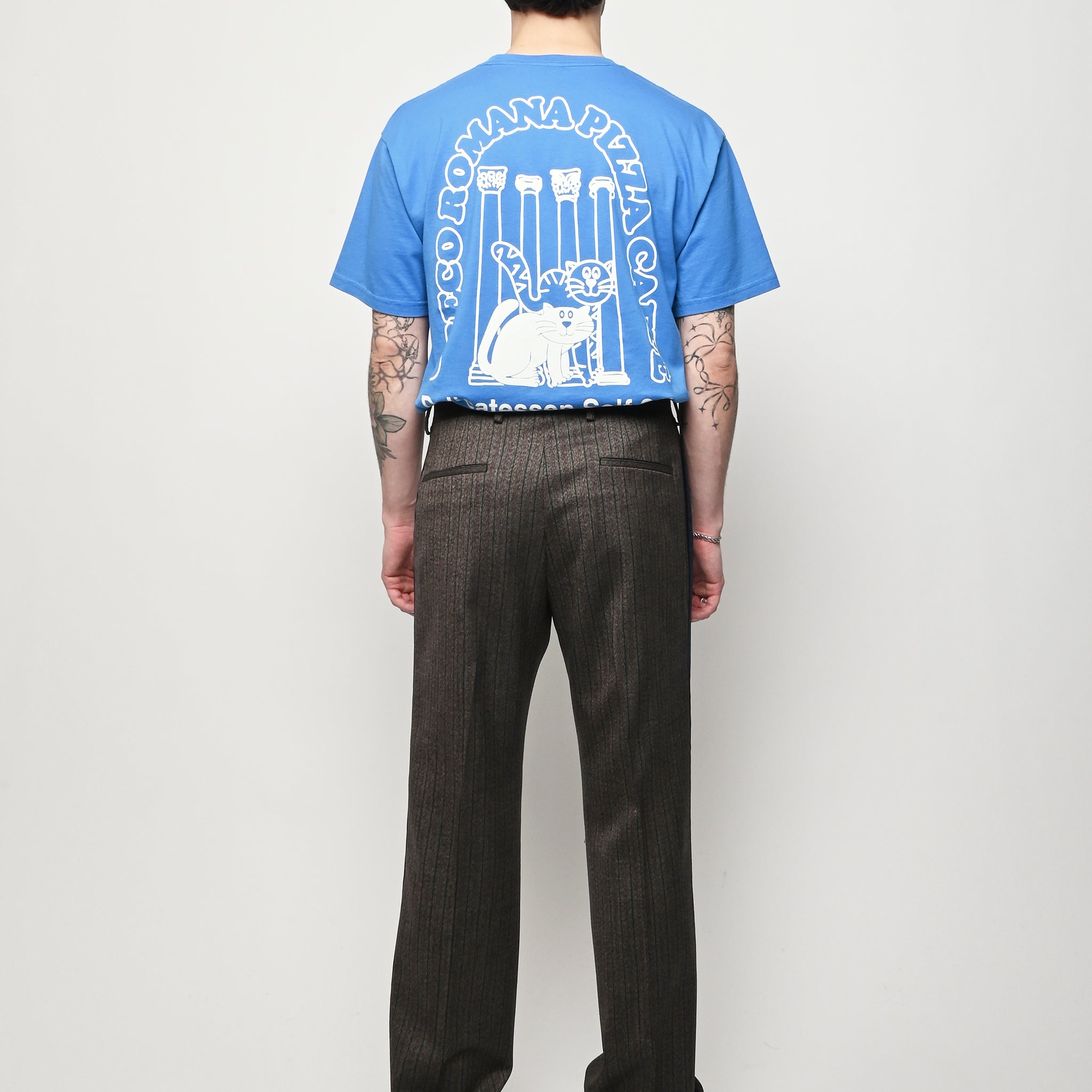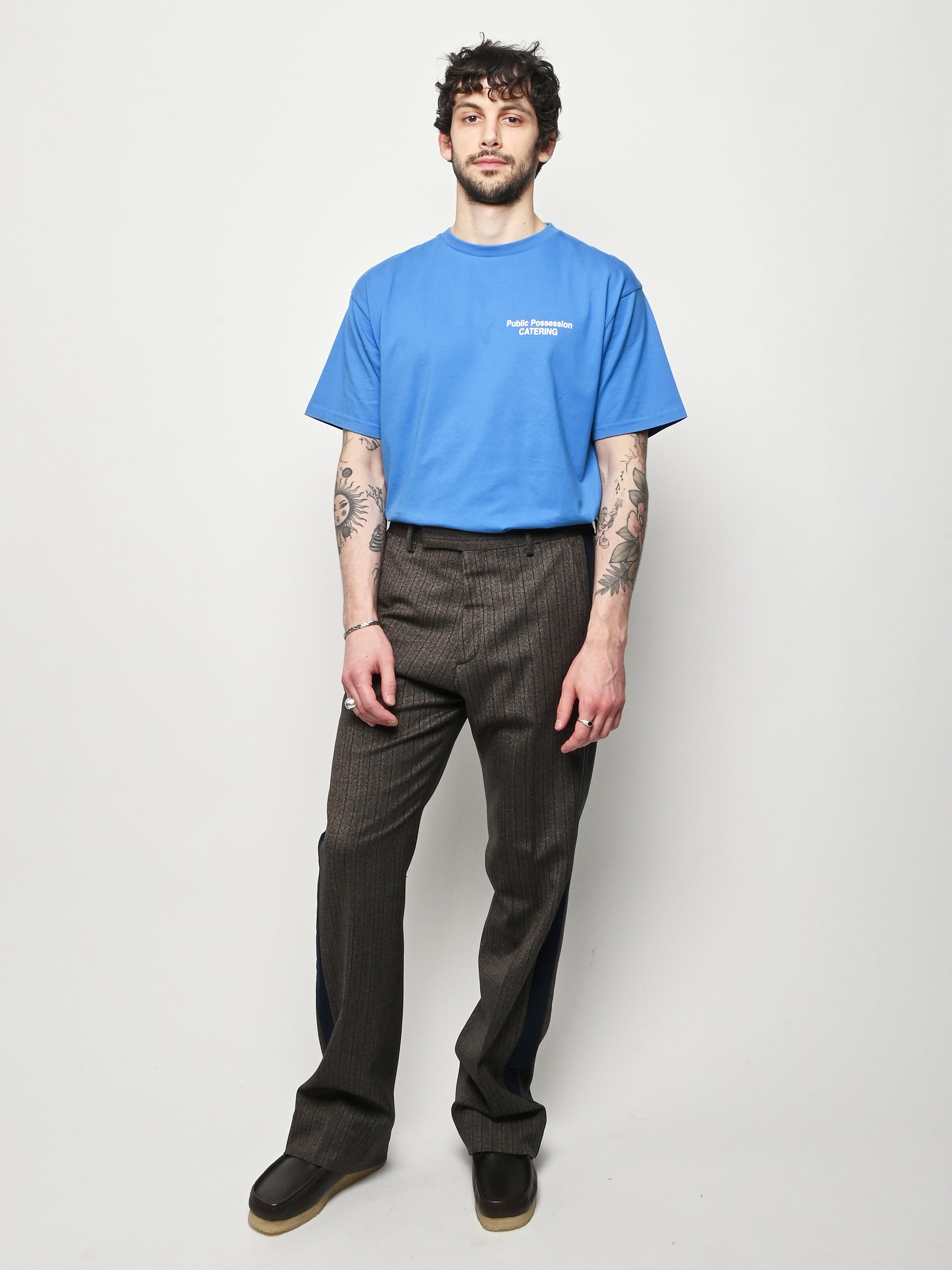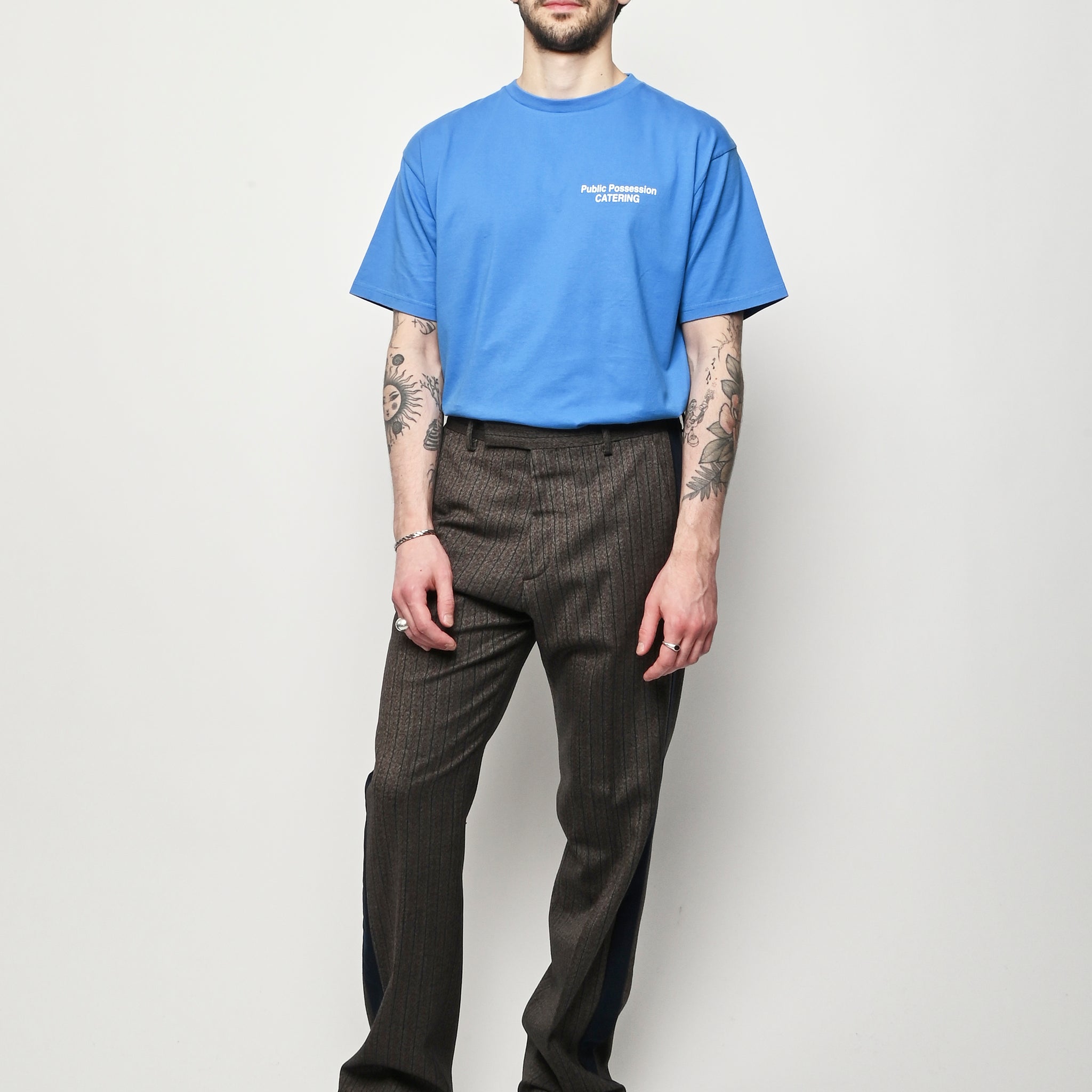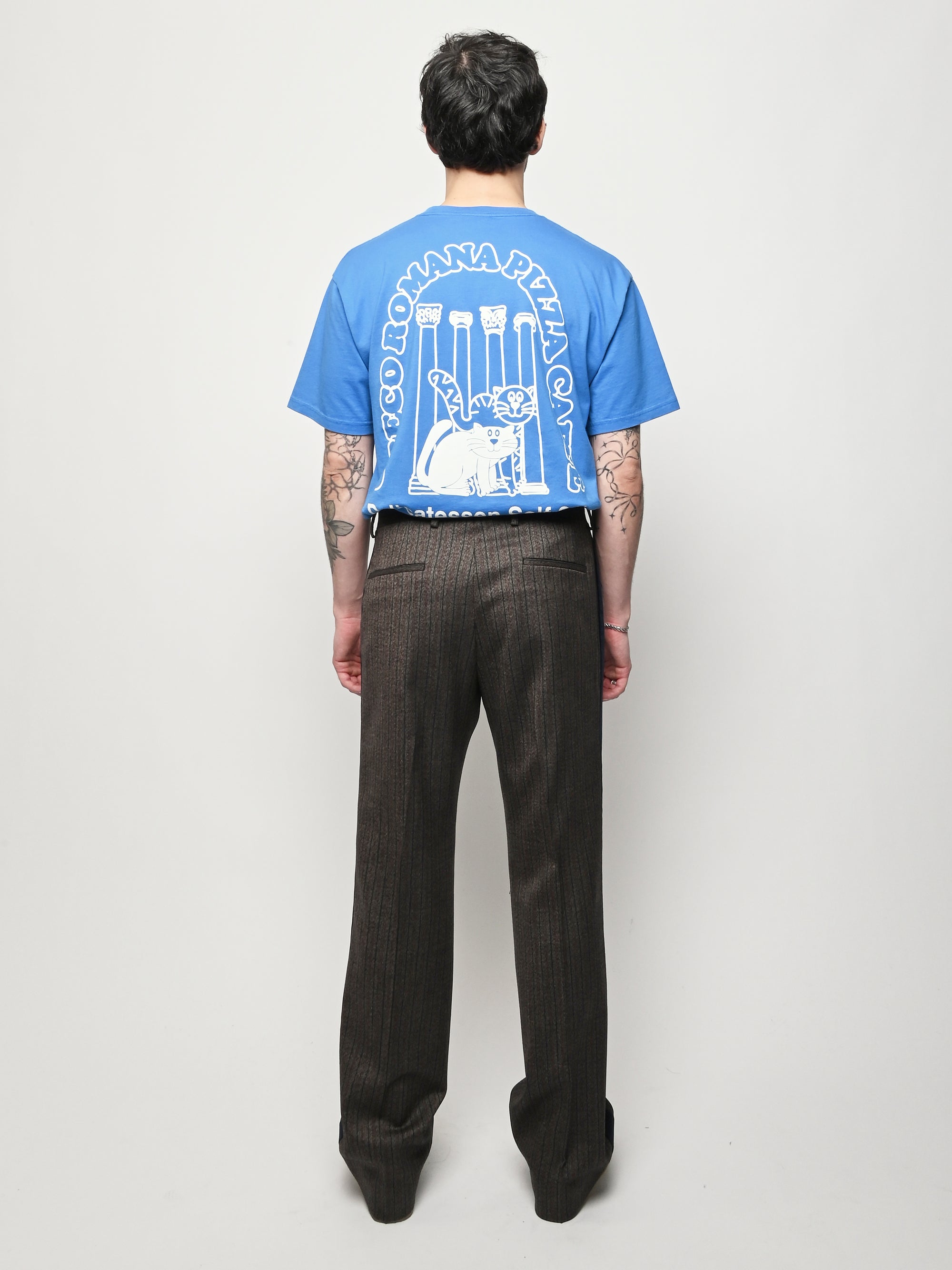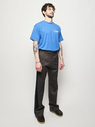 Wales Bonner Alto Tailored Trousers. Rich mouliné tailoring wool with a viscose lining and navy velvet trouser braid.